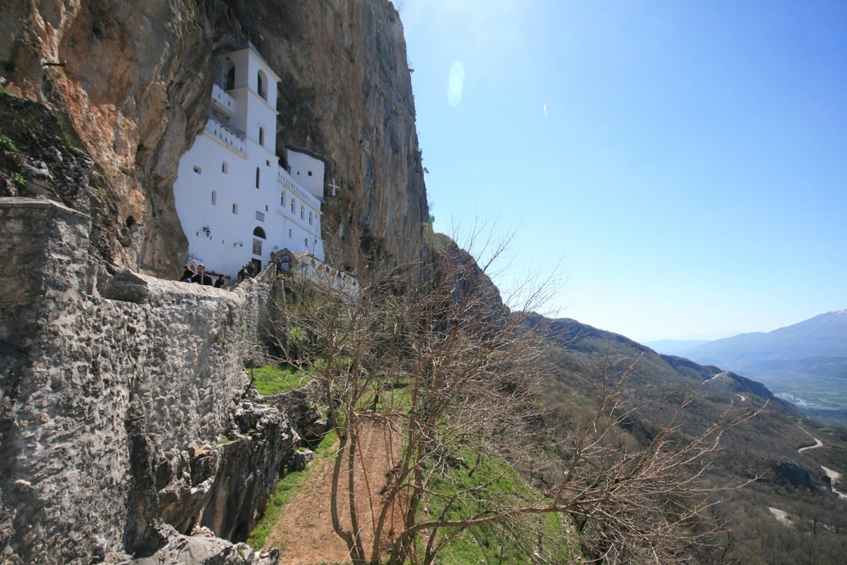 - Mănăstirea Sfântul Vasile de Ostrog - situată pe Muntele Ostrosla. cel mai popular loc de pelerinaj din Muntenegru datorită minunilor săvârșite de Sfântul Vasile al Ostrogului; Complexul monahal este format din: Mănăstirea de jos cu Biserica Sfânta Treime și arhondaricul pentru pelerini și Mănăstirea de sus cu două biserici mici aflate în peșteri; În cea de la primul nivel se află moaștele Sfântului Vasile al Ostrogului; Cei care doresc pot înnopta la mănăstirea de sus, sub cerul liber; Tradiția spune că Sfâmtul Vasile vine și îi vindecă pe cei care se nevoiesc sub cerul liber; Există saltele și pături pentru toată lumea; închinare la moaștele Sfântului Vasile și participare la Slujba Vecerniei;